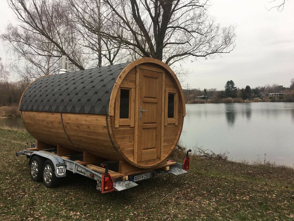 Unsere Sauna ist 4m lang und befindet sich auf einem 6m Anhänger.